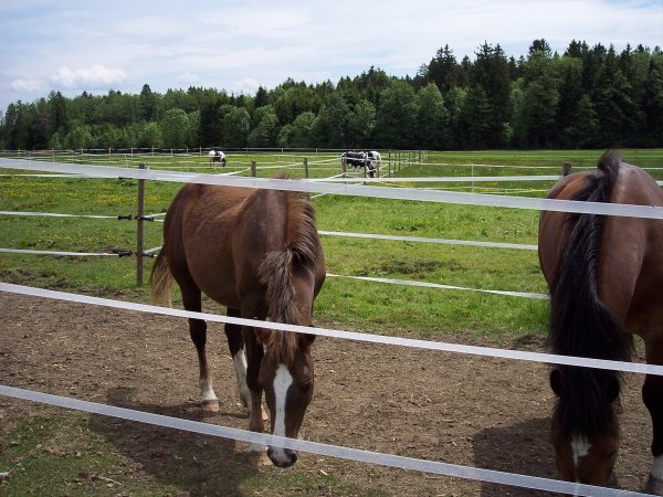 Die Unterbringung erfolgt neben dem Offenstall der Herde in Paddockboxen, so dass ein Kontakt möglich ist ohne Verletzungsgefahr.Wenn die Herde Weidegang hat kommt ihr Pferd auf eine Koppel daneben, je nach Verträglichkeit mit einem Pferd aus der Herde.